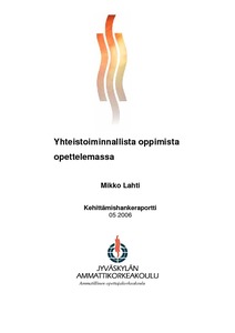 Kehittämishanke perehtyy yhteistoiminnallisenoppimisen käsitteeseen. Selvitys pohjautuu kirjallisiin lähteisiin ja Pohjois- Karjalan ammattikorkeakoulussa toukokuussa 2005 tehtyyn kyselyyn jossa tutkittiin yhteistoiminnallisen oppimisen käsitteen tunnettuutta matkailun koulutusohjelman opettajien keskuudessa. Kyselyn tulokset puretaan tässä selvityksessä. Yhteistoiminnallinen oppiminen enemmän kuin yksittäinen opetusmenetelmä, yhteistoiminnallinen oppiminen on myös tapa suhtautua tietoon, oppimiseen toisiin ihmisiin jaympäristöön. Yhteistoiminnallisen oppimisen taustalla ovat humanistinen ihmiskäsitys sekä näkemys jonka mukaan oppija on aktiivinen uuden tiedon tulkitsija ja hän luo tiedolle merkityksiä aiempien kokemuksiensa perusteella, eli lähinnä konstruktivistinen oppimiskäsitys. Selvityksessä tarkastellaan yksityiskohtaisemminmyös joitakin opetusmenetelmiä joiden voidaan selvästi katsoa tukevan yhteistoiminnallista oppimista ja joiden avulla voidaan toteuttaa yhteistoiminnallisen oppimisen periaatteita käytännössä. Yhteistoiminnallisen oppimisen soveltaminen opetustyössä on johtanut erinomaisiin oppimistuloksiin. Näihin tuloksiin ei kuitenkaan päästä nojautumalla tiukasti vain konstruktivistisiin oppimisnäkemyksiin tai käyttämällä opetusmenetelmänä vain ja ainoastaan pienryhmä opetusta tai parityöskentelyä. Opetuksen tarkoituksena on opiskelijoiden monipuolinen kehittäminen,joten tarvitaan useita toisiaan tasapainottavia lähestymistapoja. Erilaiset oppilaat ja erilaiset aiheet tarvitsevat erilaisia ja monipuolisia opetusmenetelmiä. The report studies the concept of the cooperative learning. The report is based on written sources and inquiries done in May 2005 inNorth Carelian Polytechnic in which the concept of cooperative learning was studied among the teachers. The results are told in this report. The cooperative learning is more than a teaching method. It is a way to react to information, learning and environment. The cooperative learning is based mainly on a "new" earning ideas. Teaching methods which can be used to carry out the principles of cooperative learning in practise are examined in the report. The best learning results are obtained by using versatile teaching methods. The different subjects and the different pupils need several teaching methods. Keywords Cooperative learning, learning methods