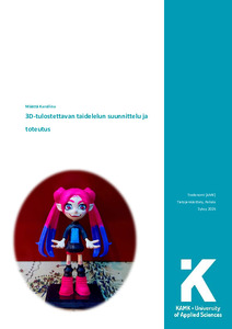 (2025)Opinnäytetyön tavoitteena oli luoda oma taidelelu, joka 3D-tulostettiin. Työprosessiin sisältyi hahmon suunnittelu, mallinnus, tulostus ja maalaaminen, minkä jälkeen nukke oli valmis. Työn lähtökohtana oli kiinnostus ... -