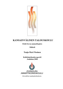 Kehittämishankkeeni aihe oli talouskoulun opetussuunnitelman muokkaaminen Etelä-Savon ammattiopiston kansainväliselle talouskoululle. Tavoitteena oli laatia opetussuunnitelma, joka palvelisi mahdollisimman tehokkaasti opiskelijoita sekä opettajia. Kehittämishankkeen tuotoksena olen tehnyt raportin, jossa pohditaan millainen kansainvälisyyspainotteinen talouskoulu sopisi juuri meidän oppilaitoksellemme Mikkelissä. Taustatyötä tein mm. vierailemalla vastaavissa oppilaitoksissa Jyväskylässä ja Kuopiossa. Kansainvälisyyspainotteisen talouskoulun opetussuunnitelma perustuisi kansalliseen talouskoulun opetussuunnitelmaan, joka kattaa 20 opintoviikkoa. Uudessa kansainvälisyyspainotteisessa talouskoulussa pakolliset opinnot eli 14 ov:tä olisivat samat kuin tavallisen talouskoulunkin opetussuunnitelmassa. Kansainvälisyyspainotteisuus näkyisi opetussuunnitelmassa juuri valinnaisten- sekä vapaasti valittavien aineiden kohdalla, lisäksi kokonaisvaltaisena kansainvälisyysajatteluna kaikkien oppiaineiden kohdalla. Suunnittelemani muutokset opetussuunnitelmaan ovat nähtävissä raporttini liitteessä.
