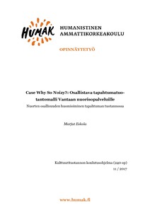 (Humanistinen ammattikorkeakoulu, 2017)Opinnäytetyön tarkoituksena oli kehittää Vantaan nuorisopalveluiden Noizy? -tapahtumaa laatimalla tapahtumalle kattava tuotantosuunnitelma, joka on apuna myös tapahtuman tulevissa tuotannoissa. Tapahtuman tuotantomalli on ... -