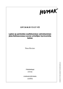 (2025)Tämän opinnäytetyön tilaajana oli Jääurheiluseura Haukat ry. Opinnäytetyön aihe koostui tilaajan tarpeesta saada perheet mukaan toimintaan, lisäten tietoisuutta mitä tarvitsee huomioida nuoren urheilijan arjessa. Tavoitteita ... -