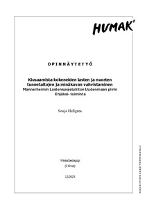 (2025)Tämä opinnäytetyö on kehittämistyö Mannerheimin lastensuojeluliiton Uudenmaan piirin Ehjäksi- toimintaan. Ehjäksi- on tammikuussa 2024 käynnistynyt kolmivuotinen kehittämis hanke, jonka tarkoituksena on tukea kiusaamista ... -