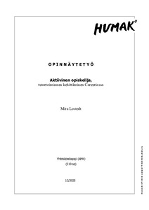 (2025)Opinnäytetyöni kohdistui ammatillisen koulutuksen opiskelijoihin, jotka toimivat aktiivisina opiskelijoina oppilaitoksessamme. Työn tilaajana toimii Careeria Oy ja työ pohjautui Sosiaalisesti kestävä amis -verkostohankkeeseen, ... -