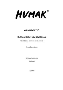 (2026)Tutkin opinnäytetyössäni yhteisöllisyyttä monitahoisena ilmiönä ja miten kulttuuritapahtumien kautta sitä voidaan vahvistaa. Tutkin opinnäytetyössäni yhteisöllisyyttä kolmelta eri tasolta Visual Festivalin kautta, joka on ...Rajattu käyttöoikeus / Restricted access / Tillgången är begränsad -