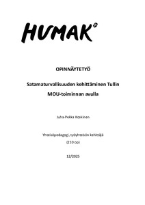 (2026)Opinnäytetyössä tarkasteltiin Tullin MOU-toimintaa (Memorandum of Understanding) ja sen merkitystä satamaturvallisuuden kehittämisessä. Työn tavoitteena oli selvittää, miten MOU-toimintaa voidaan hyödyntää viranomaisyhteistyön ... -