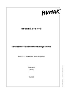 (2026)Opinnäytetyö käsittelee seksuaalirikoslaissa vuonna 2023 tehtyjä uudistuksia, sekä sen selkomukauttamisen ja kuvittamisen prosessia. Lisäksi opinnäytetyössä käydään läpi oikeusprosessia ja sen myötä tahdosta riippumattoman ... -