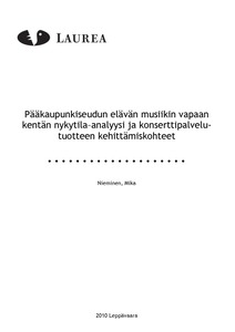 Tässä tutkielmatyyppisessä opinnäytetyössä otettiin osaa VAKA -hankkeen eri pilottialueilla toteutettavaan tutkimustoimintaan, jonka pääasiallisena tarkoituksena oli perustella elävän musiikin vapaan kentän julkisen tuen tarve. Opinnäytetyössä tehtiin nykytila-analyysi pääkau-punkiseudun elävän musiikin vapaasta kentästä selvittämällä alan haasteita muusikkojen nä-kökulmasta, kuvaamalla elävän musiikin yleisöä sekä hankkimalla alan vaikuttavuutta kuvaavia tunnuslukuja konserttijärjestäjiltä. Työn tavoitteena oli lisäksi löytää konserttipalvelujen kehittämiskohteita mittaamalla konserttipalvelutuotteen laadun osatekijöitä yleisön näkökulmasta.
