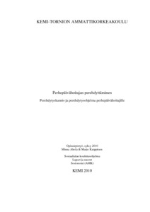 Opinnäytetyön kuvaus: Tämän toiminnallisen opinnäytetyön tavoitteena oli laatia ja tuottaa perehdytyskansio ja perehdytysohjelma perhepäivähoitajille. Perehdytyskansio on tuotettu yhteistyössä Tyrnävän perhepäivähoidonjohtajan sekä Tyrnävän ja Rovaniemen perhepäivähoitajien kanssa. Heiltä olemme saaneet haastattelujen perusteella ideoita siitä, mitä perhepäivähoitajat perehdyttämiskansioon haluavat sekä siitä, millaista perehdyttämistä halutaan. Perehdyttämisprosessissa