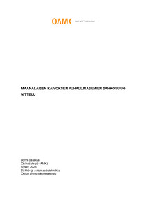(2025)Opinnäytetyön tavoitteena oli suunnitella Kittilän kaivoksen IVN1:n- ja IVN5:n-puhallinasemille uudet sähköistykset, sekä laatia työohjeet. Työ aloitettiin suunnittelemalla laitteistoille uudet paikat, jotka oli katsottu ...Avoin saatavuus / Open access / Öppen tillgång -