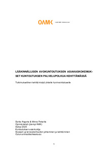 (2025)Terveydenhuollon rakenteelliset muutokset sekä väestön ikääntyminen luovat tarpeen jatkuvalle palveluiden kehittämistyölle. Väestöennusteiden mukaan vuoteen 2030 mennessä yli 65-vuotiaiden osuus väestöstä tulee olemaan ...Rajattu käyttöoikeus / Restricted access / Tillgången är begränsad -