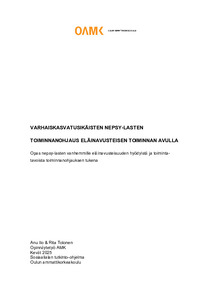 (2025)Opinnäytetyön tarkoituksena oli kerätä tietoa neurokirjon lasten toiminnanohjauksen haasteista ja tuen tarpeista sekä eläinavusteisuuden hyödyistä neurokirjon lasten kanssa. Tämän pohjalta syntyi opas, jonka toimeksiantajana ... -