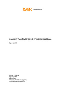 (2025)Tämän opinnäytetyön tavoitteena oli luoda kehityssuunnitelma K-Market Pyykös järvelle, jonka avulla kehitettiin myynti- ja markkinointikeinoja, joilla kaupan maksavien asiakkaiden määrää kasvatettaisiin. Opinnäytetyön ... -