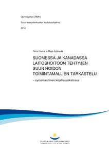 Opinnäytetyön tarkoituksena oli tarkastella Suomessa ja Kanadassa hoitohenkilökunnalle luotuja suun terveydenhoidon toimintamalleja ja niiden toimivuutta. Tavoitteena oli kerätä tutkimuksista saatu tieto laatua seuraten yhteen. Tutkimusmenetelmänä käytettiin systemaattista kirjallisuuskatsausta, jonka avulla tavoite pystyttiin saavuttamaan. Systemaattisen kirjallisuuskatsauksen vaatimusten mukaan opinnäytetyö on tehty vaiheittain ja jokainen vaihe on kuvattu opinnäytetyössä.