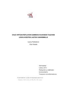 Virtsan refluksin gammakuvaus on tutkimus, jossa gammakameralla seurataan virtsan mahdollista takaisinvirtausta virtsanjohtimiin tai munuaisiin. Kun vanhemmat saavat tietoa tutkimuksesta, he voivat valmistaa lastaan tutkimukseen etukäteen. Opinnäytetyön tavoitteena oli virtsan refluksin gammakuvaukseen tulevien leikki-ikäisten lasten vanhempien tiedon lisääminen virtsan refluksin gammakuvauksesta. Opinnäytetyön tarkoituksena oli tuottaa ohje virtsan refluksin gammakuvaukseen tulevien leikki-ikäisten lasten vanhemmille. Opinnäytetyön aihe saatiin Keski-Suomen sairaanhoitopiirin kliinisen fysiologian yksiköstä. Opinnäytetyön tehtävinä olivat: Miksi virtsan refluksin gammakuvaukseen tulevien leikki-ikäisten lasten vanhemmat tarvitsevat vanhemmille suunnattua kirjallista ohjetta? Mitä asioita on otettava huomioon laadittaessa potilaalle tai potilaan vanhemmille suunnattua kirjallista ohjetta?