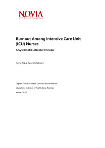 (2025)This thesis addresses the issues of compassion fatigue (CF) in nursing fields. CF is defined as physical and psychological mental state resulting from long-term exposing to patients’ sufferings and trauma., and is becoming ... -