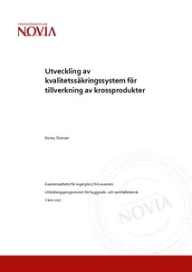(Yrkeshögskolan Novia, 2017)Syftet med detta examensarbete var att utveckla befintlig kvalitetskontroll vid krossframställning för att garantera hög kvalitet med kostnadseffektiva metoder. Arbetet utfördes på beställning av Sundström Ab Oy som är ett ... -