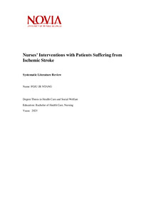 (2025)Topic/Purpose: The purpose of this bachelor thesis is to describe nurses interventions with patients suffering from ischemic stroke, by highlighting various nursing interventions in reducing suffering, further complications, ... -