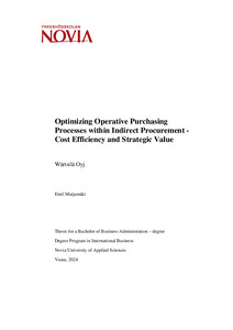 (2024)This bachelor’s thesis focused on optimizing Operative Purchasing (OP) processes within Indirect Procurement (IP) at Wärtsilä, with an emphasis on cost efficiency and strategic value through digitalization. The aim of the ... -