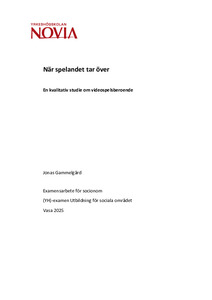 (2025)I detta examensarbete har jag genomfört en kvalitativ studie om videospelsberoende. Syftet med arbetet är att undersöka vad videospelsberoende innebär, hur man kan stödja en person som lider av det samt vilka hjälpinsatser ...