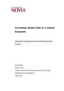 (2025)This thesis examined how a small cultural organization collaborates with its main financial stakeholders to co-create cultural value that benefits both the organization and the surrounding region. The study focused on the ... -