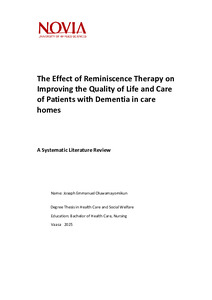The Effect of Reminiscence Therapy on Improving the Quality of Life and Care of Patients with Dementia in care homes