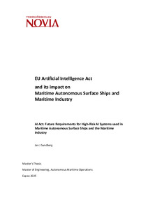 (2025)The subject of this thesis was about the EU Artificial Intelligence Act and its impact on the maritime industry with a focus on ships and Maritime Autonomous Surface Ships (MASS). The objective was to determine how the AI ... -
