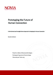 (2025)This thesis investigates how life-centred and foresight-driven design can contribute to prototyping the future of human connection. This study provides a review of the artifacts and practices developed by Tngl Studios (such ... -