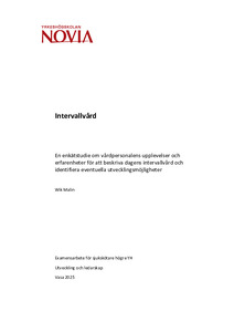 (2025)Syftet med examensarbetet var att beskriva intervallvården för äldre utifrån vårdpersonalens perspektiv, för att identifiera eventuella utvecklingsmöjligheter baserade på vårdpersonalens upplevelser och erfarenheter. ... -