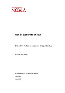 (2025)Detta examensarbete handlar om maskrosbarn. Med maskrosbarn avses barn som trots utsatta uppväxtförhållanden lyckas skapa ett välfungerande och meningsfullt liv som vuxna. Syftet med det här arbetet har varit att ta reda ... -