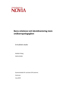 (2025)Barnets känslohantering, anknytning, olika relationer till vuxna och barnets utveckling är återkommande teman i arbetet. Anknytningen och relationerna som barnet har påverkar barnet genom hela livet. Inom småbarnspedagogiken ... -