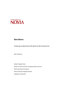 (2024)The purpose of this master’s thesis is to describe, analyse and evaluate the process of producing an album for the Alternative Folk artist 'No Fortunate Son'. The thesis presents the production process with illustrations ...