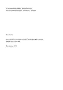 Kouvola ja entiset kunnat Valkeala, Anjalankoski, Elimäki, Jaala ja Kuusankoski ovat kouluttaneet henkilöstöään Huolen puheeksiottoon (Hupu). Tällä tutkimuksella on tarkoitus selvittää onko kouluttautumisesta ollut hyötyä päivähoidon työntekijöille. Tutkimuksessa selviää myös alueellisia eroja kouluttautumismäärissä. Tässä työssä tarkasteltiin varhaisen puuttumisen menetelmiä, jotka ovat huolen puheeksiotto, kasvatuskumppaunuus, varhainen tukeminen ja verkostoyhteistyö. Tutkimus on toteutettu kyselylomakkeella, joilla kerättiin tietoa koulutuksen vaikuttavuudesta työntekijän työtapoihin ja herkkyyteen havaita huolta.
