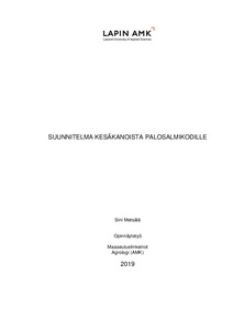 Tämän opinnäytetyön tarkoituksena on tehdä suunnitelma Palosalmen palvelukodille virkistystoimintaan tarkoitetusta kesäkanalasta lähiluontoympäristön kehittämiseksi. Suunnitelma sisältää tietoa kesäkanojen ottamisesta, pienkanalan suunnittelusta ja rakentamisesta sekä kanojen hoidosta. Lisäksi opinnäytetyössä alustetaan suunnitelmaa kertomalla yleistietoa kanasta eläimenä. Palosalmi-koti tarjoaa yksilöllistä palveluasumista ikäihmisille sekä ikääntyville päihde- ja mielenterveyskuntoutujille Palojärven rannalla Rovaniemellä. Tämän projektin kautta Palosalmi-koti haluaa kehittää lähiluontoympäristöään sekä virkistystoimintaansa asiakkaille, siksi tein tämän työn. Opinnäytetyö on toiminnallinen sekä kehittävä, ja se on tehty toimeksiantona Palosalmi-kodille.