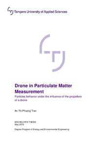 The aim of the research is experiment and analysis on performance, practicality as well as obstacles of applying a drone in measuring air quality and concentration of fine dust specifically in impact of propellers on PM concentration results. In addition, the study also focuses on distribution of air-borne particles at different altitudes and behaviour of different size particles under impacts of wind. The experiment was done using 2 particulate meters: Trotec PC220 and DustTrak under impact of flying drone Phantom 4 PRO. Trotec is hung above drone while DustTrak is placed 2.3 m away to study the propeller’s impacts at different distance. The results are collected in indoor environment and it shows significant impacts of propellers on PM concentration in surrounding environment even when the sensor is placed 2.3 m away. The wind speed is lower and lower as it goes further away above the drone and PM concentration also decrease proportionally. However, further study in different environments such as outdoor, industrial site with more constant ambient concentration is needed for deeper understand on mechanism of the impact of the propeller.