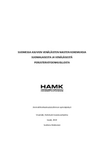 Opinnäytetyön aiheena on ”Suomessa asuvien venäläisten naisten kokemuksia suomalaisesta ja venäläisestä perusterveydenhuollosta”. Työn tarkoituksena oli vahvistaa terveydenhuollon henkilökunnan osaamista venäläisten naisasiakkaiden kanssa työskennellessä. Opinnäytetyön tavoite oli kuvata Suomessa asuvien venäläisten naisten kokemuksia suomalaisesta ja venäläisestä perusterveydenhuollosta. Opinnäytetyön taustalla on tekijän oma kiinnostus aiheeseen sekä maahanmuuttajan tausta.