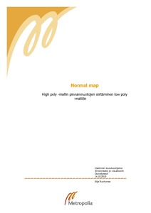 Opinnäytetyö koostuu tekstuureihin, erityisesti pelialalla käytettyihin, ja normaalikarttoihin tutustumisesta ja sekä kolmen esimerkkityön yksityiskohtaisesta projektikuvauksesta. Esimerkkityöt esittelevät kolme erilaista tapaa luoda normal map Autodesk 3Ds Max -ohjelmalla luodulle mallille. Opinnäytetyössä käsitellään myös normal mapin luomista