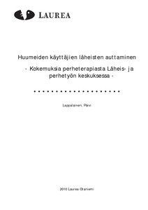 Tutkimusympäristönä on Irti Huumeista ry:n Läheis- ja perhetyön keskus. Opinnäytetyön tarkoituksena on selvittää minkälaisissa tilanteissa huumeiden käyttäjien läheiset hakeutuvat perheterapiaan, miten terapiassa käynti on vaikuttanut ja vastannut odotuksia ja miten läheiset kehittäisivät terapiaa ja huumehoitotyötä.