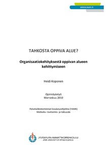 Tämän opinnäytetyön tarkoituksena on kuvata kehityspolku, jonka avulla Tahkon alueesta syntyy oppiva alue sekä analysoida kehittymisen mahdollisuuksia ja esteitä. Oppivan alueen syntyminen vaatii organisaatioiden oppimista, jota tässä opinnäytetyössä kuvataan Sokos Hotel Tahkovuoren kautta. Opinnäytetyön tavoitteena on analysoida Tahkon alueelta ja Sokos Hotel Tahkovuoresta tehtyjä tutkimuksia ja niitä käyttäen tehdä toimenpide-ehdotukset, joiden avulla hotellikokonaisuudesta kehittyy osa Tahkon oppivaa aluetta, liiketoiminnallisesti tuottava ja asiakkaalle kiinnostava kohde.