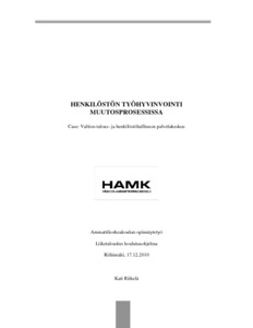Opinnäytetyön päätutkimusongelmana ja tavoitteena on selvittää, millainen on henkilöstön näkemys organisaatiomuutosprosessin läpiviennistä työhyvinvoinnin kannalta. Opinnäytetyön aluksi esitellään tutkimusongelma, työn tavoitteet ja toimeksiantajayritys. Teoriaosuudessa käsitellään organisaatiomuutoksen ja työhyvinvoinnin käsitteitä. Opinnäytetyön empiirisessä osuudessa esitellään kyselylomaketutkimuksena toteutetun työhyvinvointitutkimuksen vastauksia, pohditaan henkilöstön näkemyksiä ja tuntemuksia työhyvinvoinnista muutosprosessin aikana sekä selvitetään muutosprosessin vaikutusta Valtion talous- ja henkilöstöhallinnon palvelukeskukseen. Työhyvinvointia tutkittiin johtamisen, päätöksenteon, viestinnän ja työilmapiirin kautta.