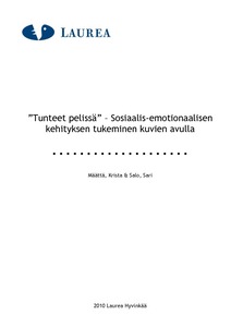 Opinnäytetyömme aiheena olivat lasten tunnetaidot ja tunnekuvakorttien käyttö sosiaalis-emotionaalisen kehityksen tukena. Opinnäytetyömme tehtävänä oli selvittää, millaisia tunteita lapset tunnistivat kuvakorteista. Lisäksi halusimme selvittää, millainen jäsentelytaito lapsilla oli kuvasarjojen muodostamiseen ja millaiset kuvien ulkoasut miellyttivät lapsia sekä millaisia käyttö-mahdollisuuksia kuvakorteilla voi päiväkodissa olla. Opinnäytetyömme on osa Lapsen ja nuoren hyvä arki – hanketta.