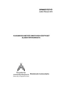 Opinnäytetyön avulla on pyritty selvittämään Kuusamossa metsää omistavien mielipiteitä Kuusamon hirvikannasta ja sen aiheuttamista ongelmista. Työn tilaaja on Metsänhoitoyhdistys Kuusamo.