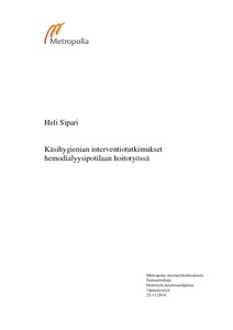 Opinnäytetyön tarkoituksena oli kartoittaa systemaattista kirjallisuuskatsausta soveltaen, minkälaisia interventiotutkimuksia on tehty käsihygieniasta hemodialyysipotilaan hoitotyössä sekä minkälaisia tuloksia niiden avulla on saatu. Interventiotutkimus valittiin tämän opinnäytetyön aiheeksi, koska tutkimukset ovat tärkeä osa näyttöön perustuvaa hoitotyötä. Systemaattinen kirjallisuuskatsaus valittiin puolestaan siksi, koska tutkitun tiedon kriittinen ja systemaattinen arviointi ja yhdistely ovat edellytyksenä uutta tietoa tuottavalle tutkimukselle. Opinnäytetyön tavoitteena oli alustavasti koota tutkimustuloksia, jotta voitaisiin selvittää, voisiko interventiotutkimuksesta olla menetelmänä hyötyä projektille ja olisiko sen avulla mahdollista saavuttaa hyötyä käsihygienian noudattamisessa hemodialyysipotilaan hoidossa.