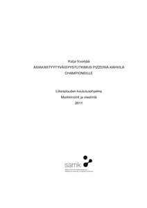 Opinnäytetyön aiheena oli tutkia asiakastyytyväisyyttä pizzeria-kahvila Championsissa. Tutkimus oli tarpeellinen, sillä sellaista ei ollut aikaisemmin tehty kyseiselle yritykselle. Omistaja halusi tietoa asiakkaidensa tyytyväisyydestä ja mitä asioita kannattaisi kehittää tulevaisuudessa.