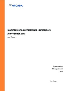 Detta arbete är en marknadsföringskampanj för Grankulla kammarkörs julkonsertserie julen 2009. Grankulla kammarkör är en ambitiös tvåspråkig amatörkör med Grankulla som hemort. Tidigare har kören självständigt skött marknadsföringen för sina traditio-nella julkonserter men för att fira tioårsjubileum för Bachs Juloratorium i repertoaren, ville kören anlita en utomstående för att planera kampanjen. Planeringen av det grafiska utseendet för kampanjen och medievalen har jag baserat på en öppen intervju med en av körens styrelsemedlemmar Tore Ståhl. Tillsammans med Tore Ståhl planerade jag bud-geten för kampanjen och fick därifrån riktlinjerna för medievalen. Konsertserien omfat-tade två konserter i Grankulla och två konserter i Olars och därmed koncentrerade jag en stor del av åtgärderna till hushåll och företag i de ovannämnda områdena. Jag plane-rade en affisch, ett programhäfte, tidningsannonser och en annons som kunde infogas i ett e-postmeddelande. Grankullakonserten har under åren blivit en tradition som lockar den lokala befolkningen men Olars var ett nytt territorium för kören. Detta syntes också i resultatet. Grankullakonserten lockade fullt hus, medan publikmängden vid konserten i Olars var en besvikelse. This thesis is a marketing campaign for a series of Christmas concerts of Grankulla kammarkör year 2009. Grankulla kammarkör is a ambitious amateur choir located in the city of Grankulla. The choir has executed its own marketing previous years, but to cele-brate the ten year anniversary of performing the Bach Christmas Oratorio, they decided to engage a third party for planning the campaign. The planning of the graphical lay-out of the campaign material and the choices of media is based on an open interview with a member of the choirs board Tore Ståhl. I planned the budget for the campaign together with Tore Ståhl and based on that i decided on the choice of media. The series of concerts consisted of two concerts in Grankulla and two concerts in Olars and therefore i concen-trated the marketing on households and businesses in the Grankulla-Olars area. I did the lay-out for a poster, an advertisement, a program and an advertisement to attach in an e-mail. The concerts in Grankulla have become a tradition but Olars was a new territory for Grankulla kammarkör. This could be seen in the result. The concerts in Grankulla attracted the audience but the number of people visiting the concert in Olars was a disappointment.