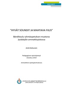 Opinnäytetyön tarkoituksena oli esitellä Jyväskylän ammattiopistossa järjestettävää bändikoulutoimintaa. Työllä haluttiin etsiä uusia näkökulmia ja toimintamalleja ryhmämuotoisen musiikinopetuksen kehittämiseen. Lisäksi luotiin katsaus bändikoulutoiminnan haasteisiin ja mietittiin mahdollisia toimintaa ja oppimista tukevia uudistuksia. Ryhmäilmiöitä käsiteltiin myös yleisellä tasolla.