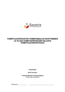 Toimittajaverkoston toimintamallin kehittäminen ja tilaus-toimitusprosessin hallinta toimittajaverkostossa