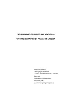 Eeva- Liisa Juurijärvi. Varhaiskasvatussuunnitelman arvojen ja tavoitteiden näkyminen päiväkodin arjessa. Järvenpää, kevät 2011, 61 s., 4 liitettä.