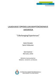 Opinnäytetyön toimeksiantajana oli Asia Exchange Oy. Työn tavoitteena oli löytää kehitysehdotuksia Asia Exchangen opiskelijavaihtopalvelun laadun parantamiseksi ja antaa tietoa opiskelijoiden vaihtoajan kokemuksista Aasiassa. Kehitysehdotusten löytämiseksi suoritettiin haastattelut Kiinassa, Singaporessa, Thaimaassa ja Indonesiassa vaihdossa olleille Jyväskylän ammattikorkeakoulun opiskelijoille, jotka olivat vaihdossa kahdenvälisten vaihtopaikkojen kautta sekä Jyväskylän yliopiston opiskelijoille, jotka olivat vaihdossa Asia Exchangen kautta.