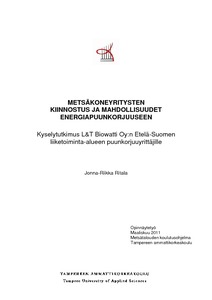 Tämän opinnäytetyön tavoitteena oli selvittää metsäkoneyritysten kiinnostusta tehdä energiapuunkorjuuta sekä mahdollisuuksia vastata energiapuun korjuupalvelun kasvavaan kysyntään. Lisäksi työn tarkoituksena oli kartoittaa yritysten mielenkiintoa toimia L&T Biowatti Oy:n yhteistyökumppanina.