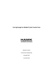 The purpose of this bachelor’s thesis was to develop the test arrangement for high strength steel (HSS) welded T-joint tensile tests by designing and producing a test jig. According to Eurocode, the welding procedure test for T-joint specimens requires a hardness test and macroscopic examination. The hardness test indirectly gives information about the connection’s strength. However, completing tensile tests may provide more accurate results. In addition, the effect of different variables on the T-joint strength can be studied. The goal of the thesis was to conduct further studies in this sphere easier, faster and more informative by creating and testing a universal jig for tensile T-joint tests.